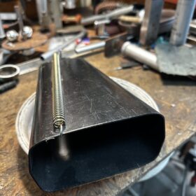 ただ、そのままで叩くとバネが直接カウベルに当たりうるさいのでバネの下部をカットしました。